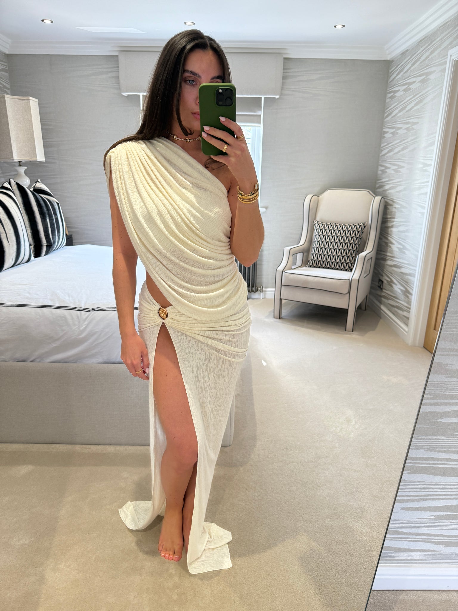 - Ruched Skirt With High Split & Rose Gold Conch Connector