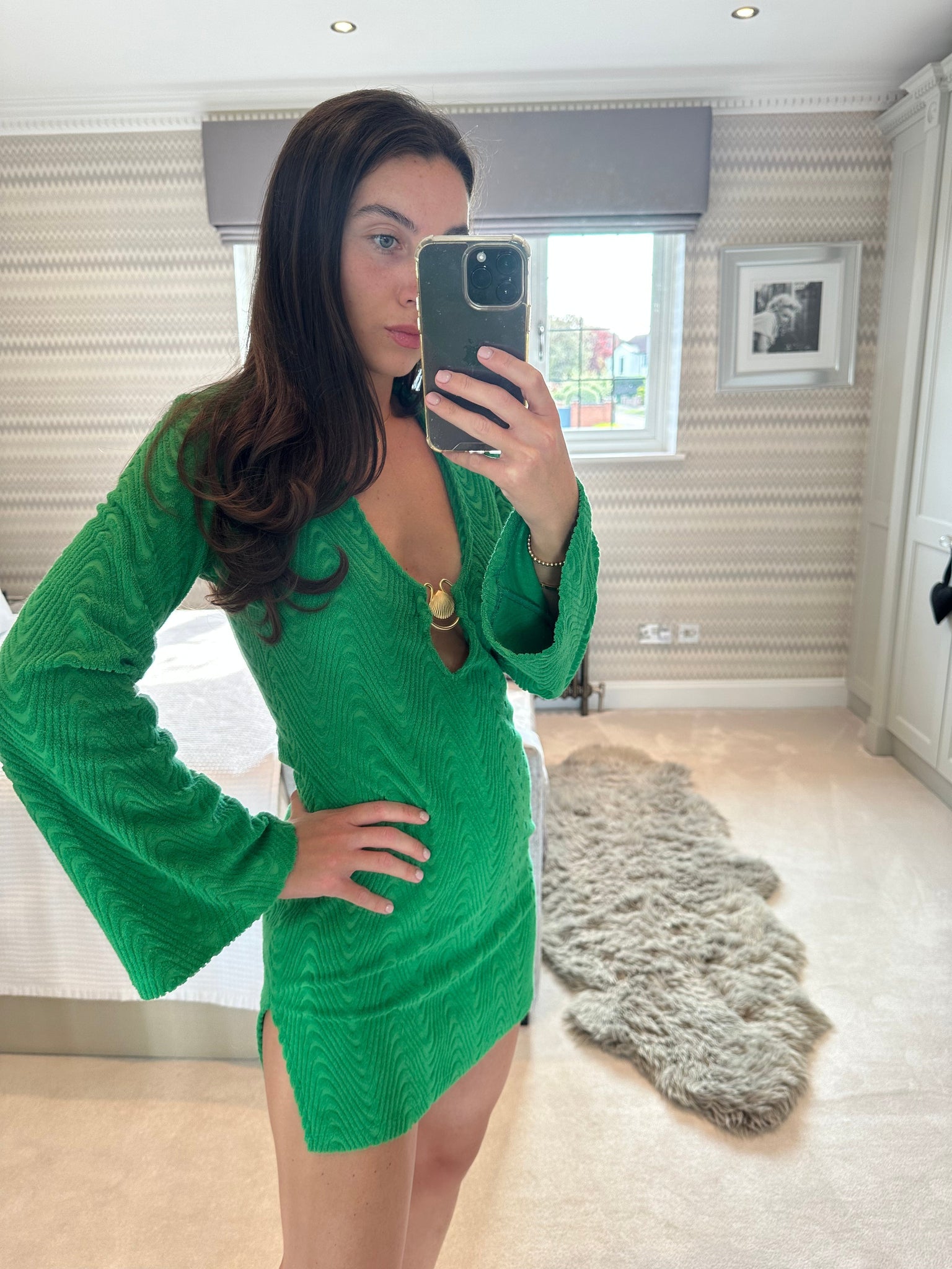 - Stunning Deep V Neck Mini Dress With Small Side Split Detail