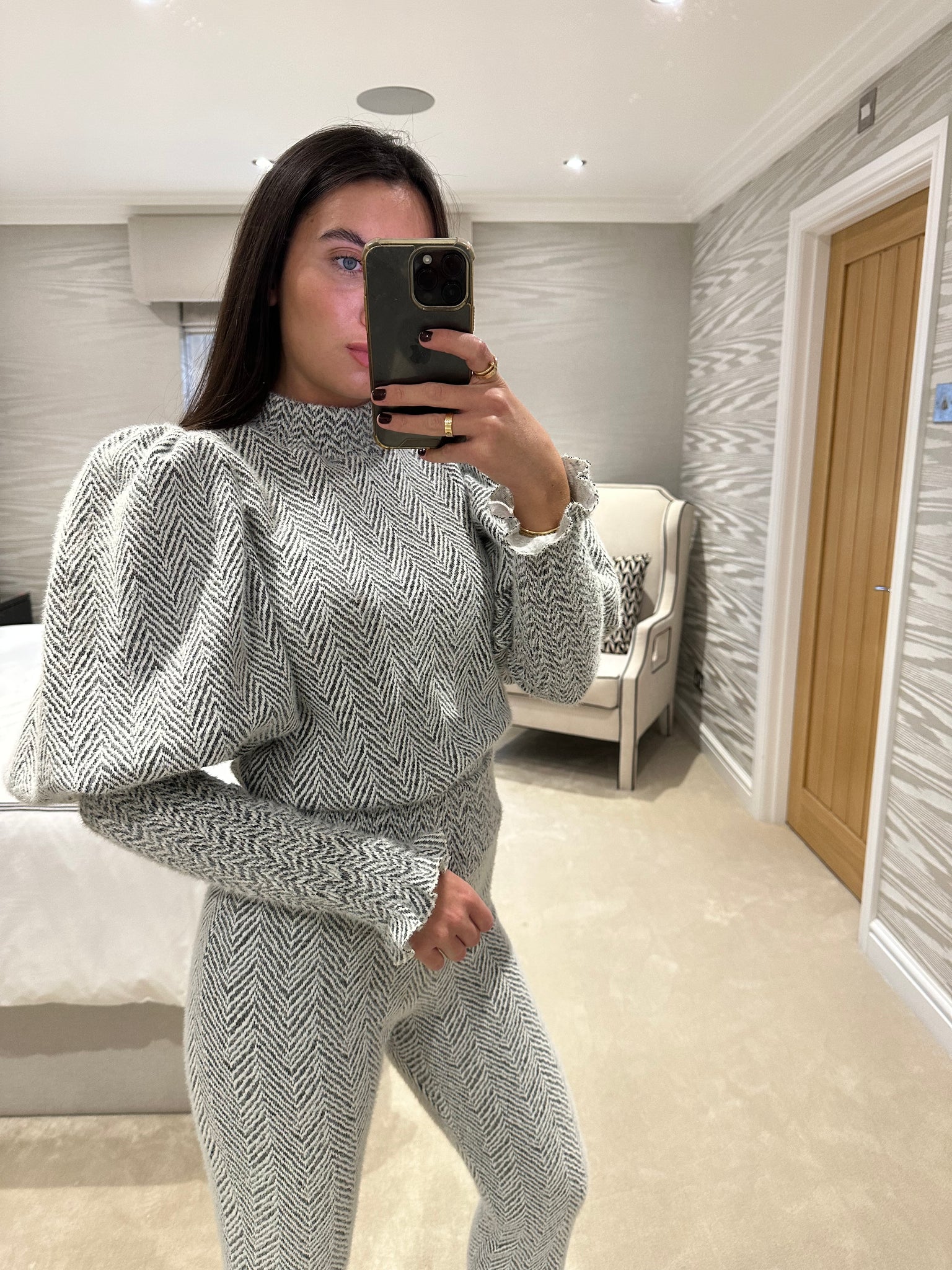 - High neck blouson style top with Shirred detailing at the neck & waist with a gigot style sleeve, fit with shoulder pads and shirring detail from elbow down.