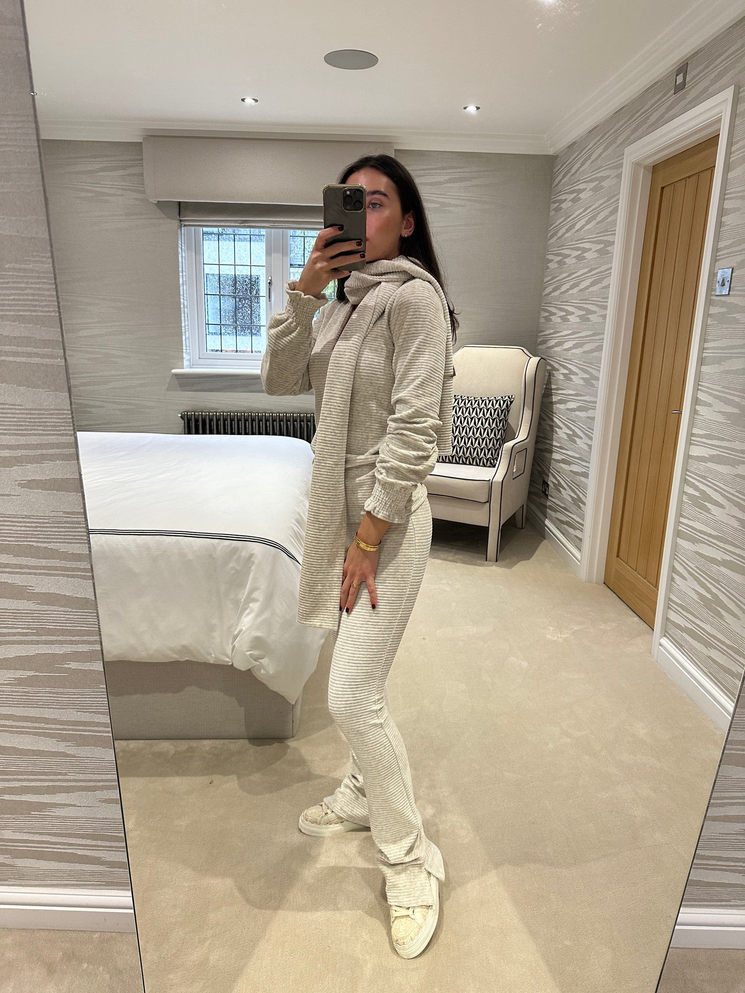 - High waisted slim Leg Trousers with elasticated waistband & outside seam split