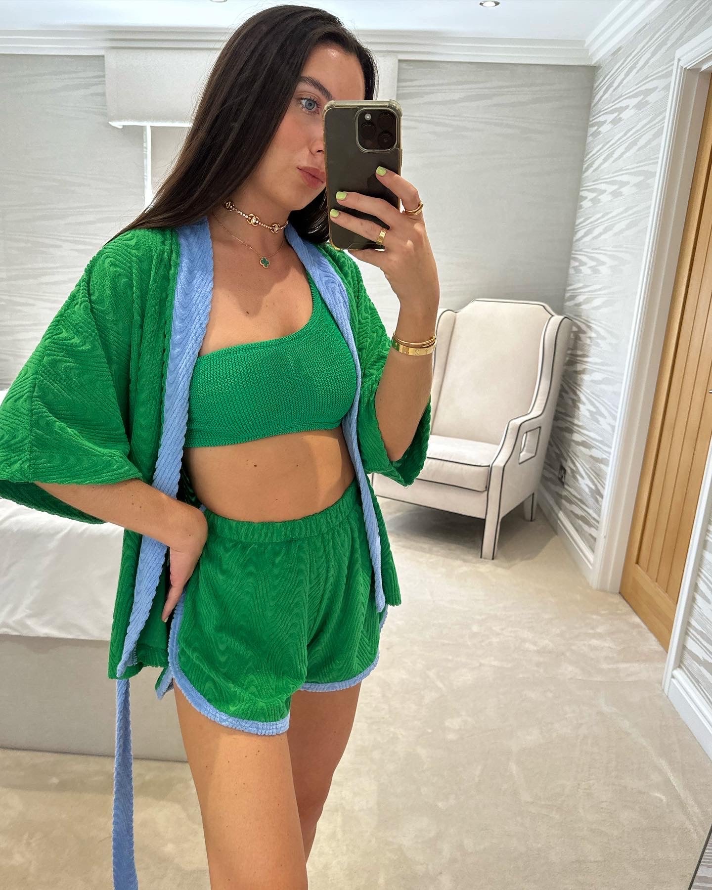 Standard Side Scallop Shorts With Contrast Piping Waistband Elasticated. - Mode Wears Size 6 - Fit Runs True To Size!